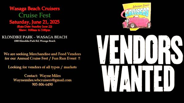 We are seeking Merchandise and Food Vendors for our Wasaga Beach Cruise Fest Weekend!