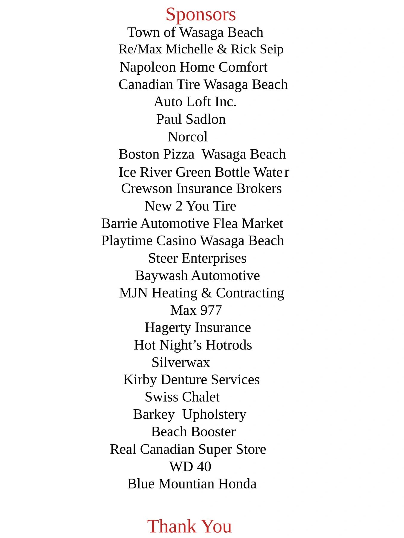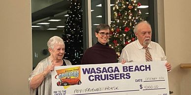 The Wasaga Beach Cruisers prides itself on the charitable donations that we have made over the years and thank all our car club members and the public who share in this worthwhile endeavor.